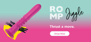 Romp Jiggle Rechargeable Silicone Thrusting Vibrating Dildo with Suction Cup - Pink