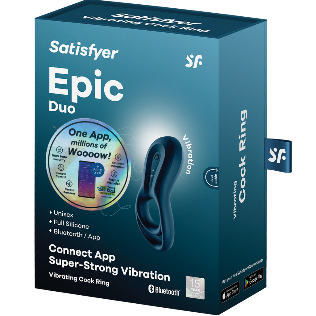 Satisfyer Epic Duo Ring Vibrator - Dark Blue - App Enabled
