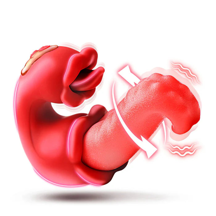 Unleash new levels of intimate pleasure with our dual-action tongue-themed vibrator. This innovative toy combines clit and G-spot stimulation, ensuring every moment is deeply satisfying. The textured tongue delivers thrilling sensations with 3 speeds and 7 pulsating patterns of licking vibrations. Meanwhile, enjoy the intense rotation and vibration from the penetrating tongue, crafted to hit your sweet spots with precision. Made from ultra-soft, premium silicone, it feels gentle yet firm where you need it most. Waterproof with an IPX6 rating, this toy is perfect for steamy shower sessions, and the USB-rechargeable design makes it simple to power up for endless play.