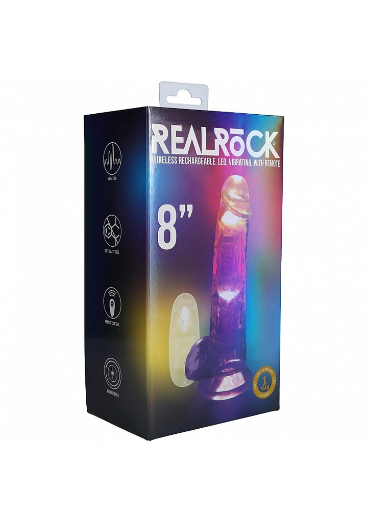 RealRock Wireless Rechargeable Remote Control LED Vibrating 8 in. Dildo with Balls Clear